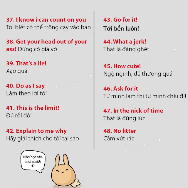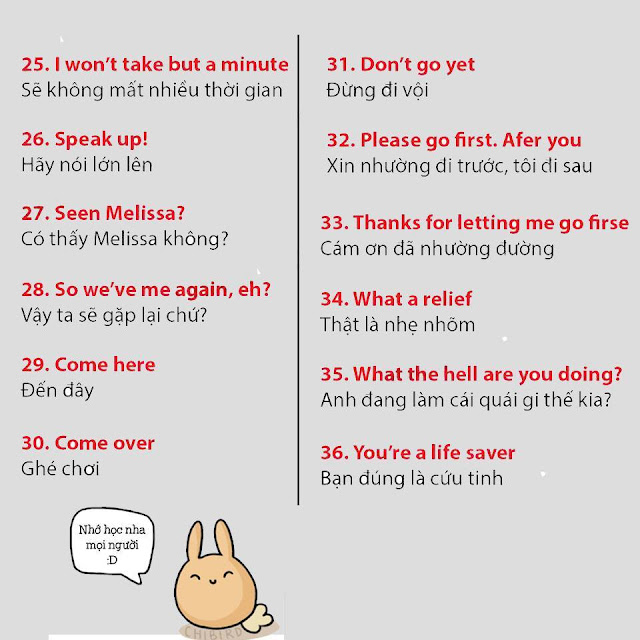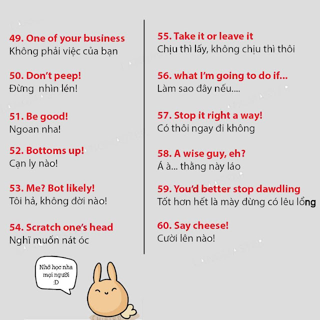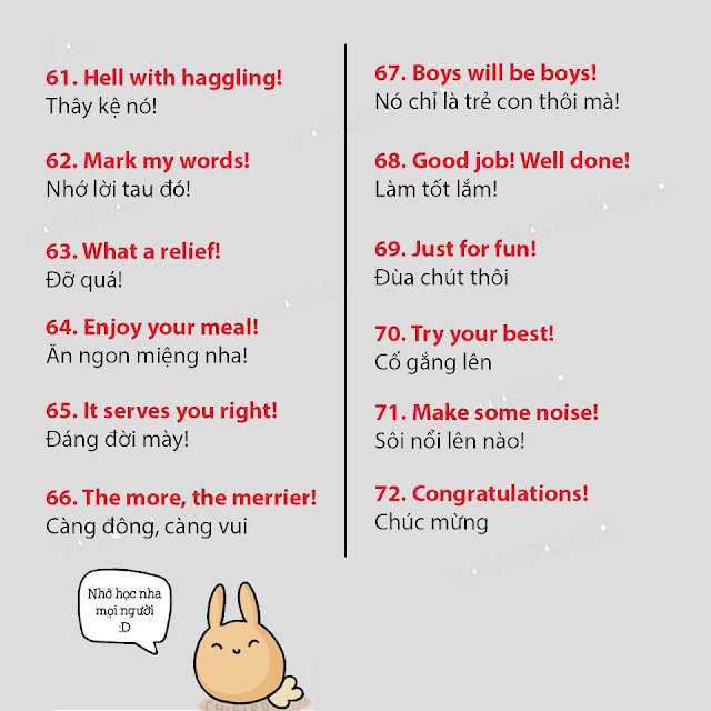 Lưu lại để học dần nhé, chắc chắn nó sẽ hữu ích cho bạn nếu muốn nâng cao khả năng giao tiếp tiếng Anh với những mẹo đơn giản hơn những phương pháp đang áp dụng nhé, lâu lâu cũng nên thay đổi phong cách học tập để co những cách học tiếng Anh thú vị hơn nhé, nhớ đừng bỏ lỡ các bài học tiếng Anh thú vị được cập nhật mỗi ngày trên website https://tienganhikun.com nhé! Ngoài ra còn có các câu lạc bộ tiếng Anh cuối tuần cũng là cách để rèn kỹ năng tiếng Anh cực hay đó, tìm hiểu các câu lạc bộ tiếng Anh miễn phí vào cuối tuần để tham gia nếu có cơ hội nhé. Chúc bạn học tiếng Anh vui vẻ!